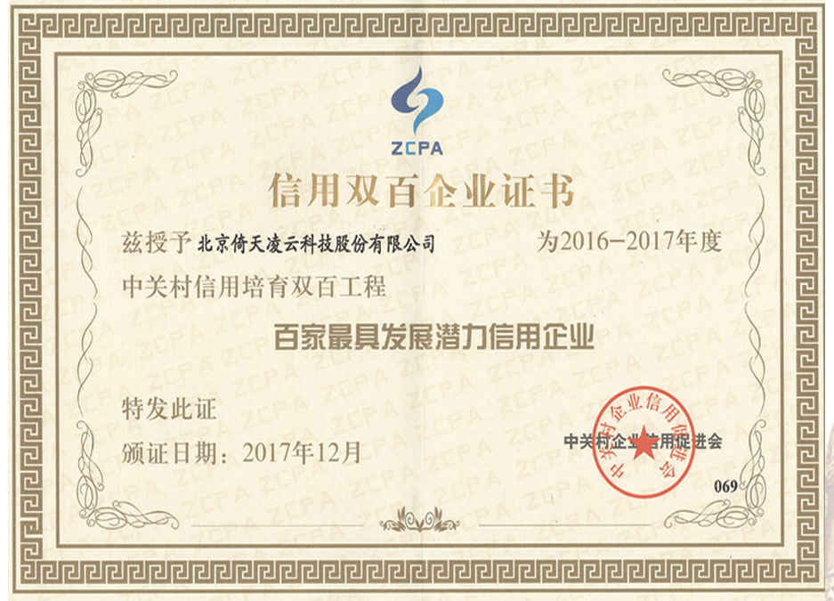 榮獲中關(guān)村信用培育雙百工程“百家最具發(fā)展?jié)摿π庞闷髽I(yè)獎”。